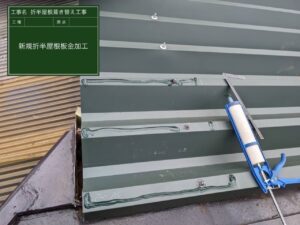 雨漏りが発生しやすい取り合い部分には、板金を加工して更に雨漏りしにくく仕舞いました。