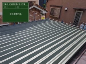 千葉市中央区にてプレハブの折板屋根修理・雨樋新設工事の施工後写真