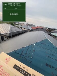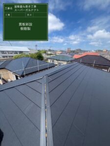 新しい屋根材はアイジー工業の「スーパーガルテクト」です。