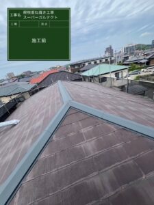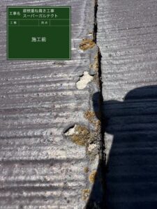 千葉市花見川区にて屋根修理・スレート屋根のカバー工法〈スーパーガルテクト〉の施工前写真