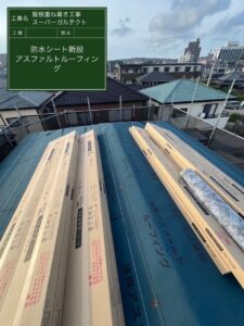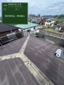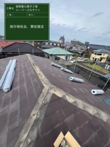 まずは既存の棟部分を撤去し、防水シートの準備を行います。
