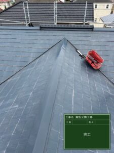 施工後は見た目も美しく一新され、強風にも安心な棟に仕上がりました。