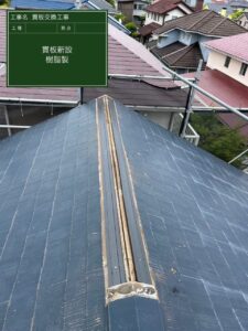 お客様のご予算や今後のメンテナンス計画を踏まえ、屋根は再塗装をご提案させて頂き、棟部分は劣化した貫板を樹脂製のものに交換させていただく運びとなりました。
