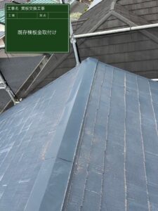 その後、もとの棟板金を取り付けて貫板交換は完了です。