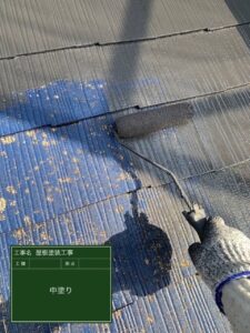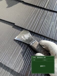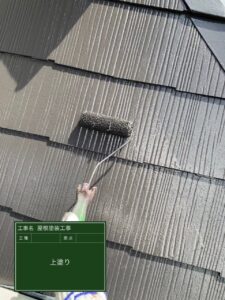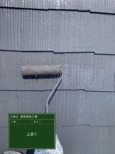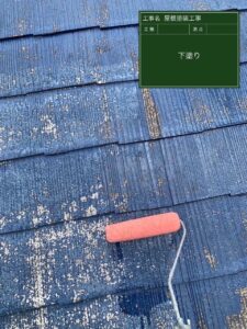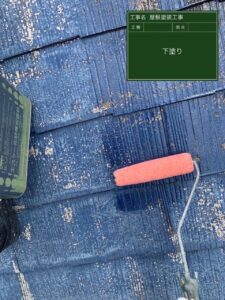 その後は、下塗りにて屋根材と塗料の密着性を高めます。