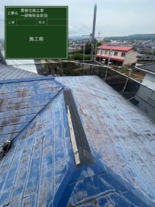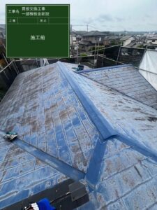 施工前 こちら下屋根と大屋根の施工前の様子です。 パッと見た