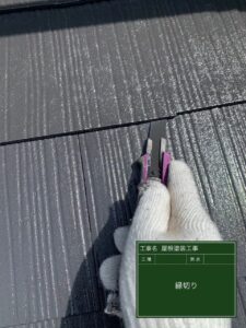 再度、屋根材が重なる隙間はカッターやスクレーパーで縁切りします。