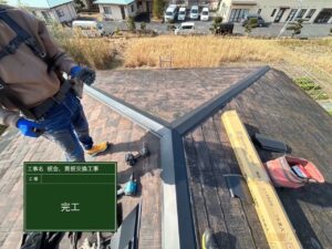 施工後は棟部分が美しくリフレッシュされ、屋根全体の見た目も引き締まった印象に。