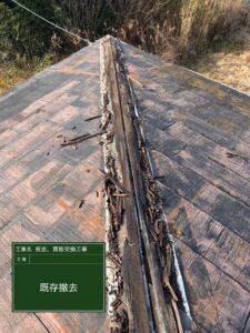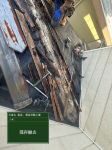 施工の様子 こちらが施工前の様子です。 屋根に雨水が溜まった