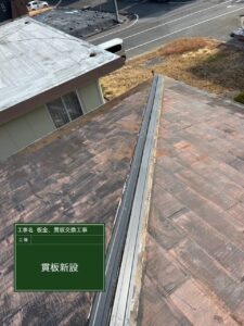 お客様とご予算や今後のメンテナンスの事、そして何年もたせたいかなどの打ち合わせを行い、今回は棟板金のみ交換する部分修繕をご提案させて頂く運びとなりました。