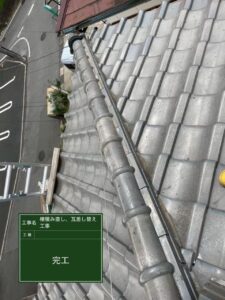 割れた瓦を新しく交換し、棟もまっすぐに整えたことで、見た目も美しく、耐久性の高い屋根に仕上がりました。